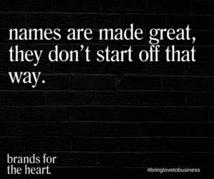 Ask yourself the same questions that you would when choosing a partner that you would marry. What is that compelling future? Do you want to have babies? (More on that later). Where do you see your brand in five years? Where do you see your brand in ten years? This is important because when you choose that name for your business it will help you grow into it.